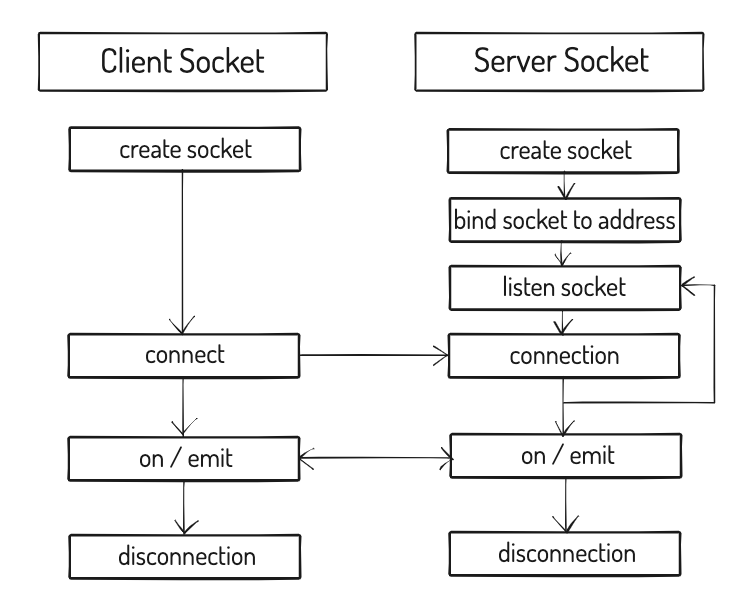 // 서버 const app = require('express') (); const http = require('http') .createServer(app); const io = require('socket.io') (http); io.on('connection', (socket) => { console.log('connected'); }); const PORT = 3000; http.listen(PORT, () => { console.log(`Server running on port ${PORT}`); });// 클라이언트 import React from 'react'; import io from 'socket.io-client'; const socket = io.connect('http://localhost:3000'); ...on / emit