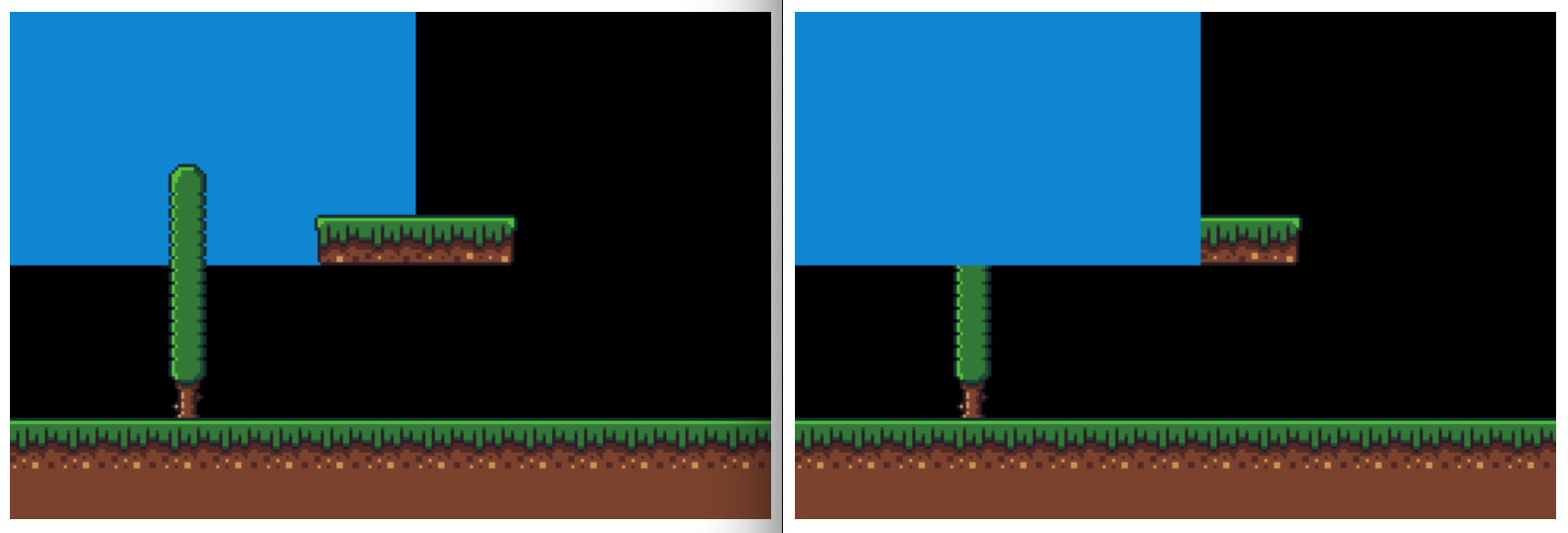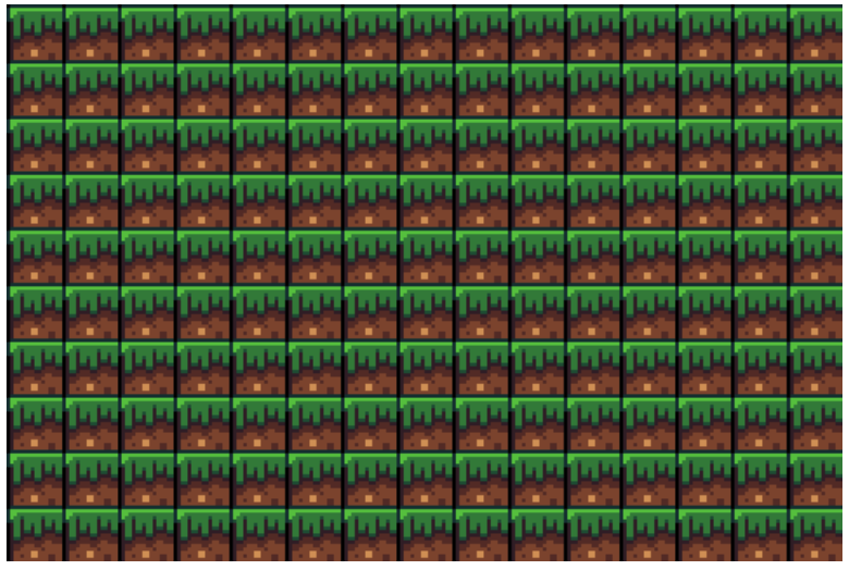 const app = new PIXI.Application({ width: 480, height: 320, }); const tileSize = 16; // map을 선언합니다 let map = { width: 4, height: 4, tiles: [ 0, 0, 0, 0, 0, 0, 0, 0, 0, 0, 0, 0, 0, 0, 0, 0, ], }; document.body.appendChild(app.view); app.loader.add("tileset", "asset.png").load((loader, resources) => { let tileTextures = []; for (let i = 0; i < 7 * 11; i++) { let x = i % 7; let y = Math.floor(i / 7); tileTextures[i] = new PIXI.Texture( resources.tileset.texture, new PIXI.Rectangle(x * tileSize, y * tileSize, tileSize, tileSize) ); } // 컨테이너 생성 let background = new PIXI.Container(); for (let y = 0; y < map.width; y++); for (let x = 0; x < map.width; x++); let tile = map.tiles[y * map.width + y]; // sprite 생성 let sprite = new PIXI.Sprite(tileTextures[tile]); // sprite 위치설정 sprite.x = x * tileSize; sprite.y = y * tileSize; // 컨테이너에 sprite 추가 background.addChild(sprite); } } // 크기설정 background.scale.x = 4; background.scale.y = 4; app.stage.addChild(background) }이어붙이고 크기를 크게 했더니