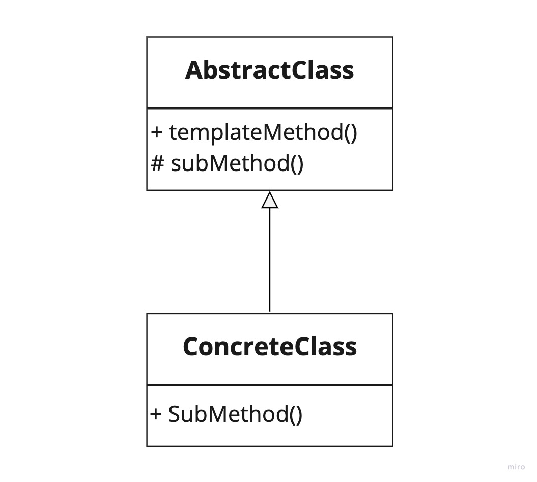 알고리즘의 뼈대 정의 또는 작업 구현을 기반으로 하는 패턴입니다.