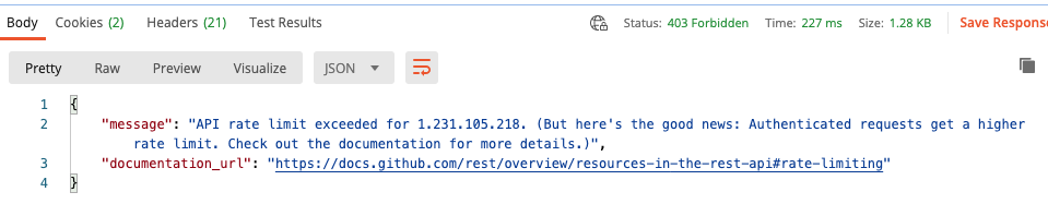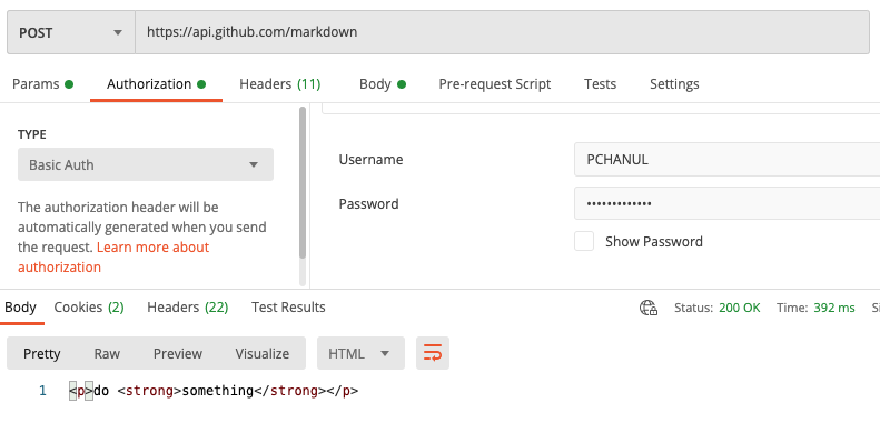 Basic Auth 설정으로 github 유저이름과 비밀번호를 입력하면 더 많은 요청을 보낼 수 있습니다.