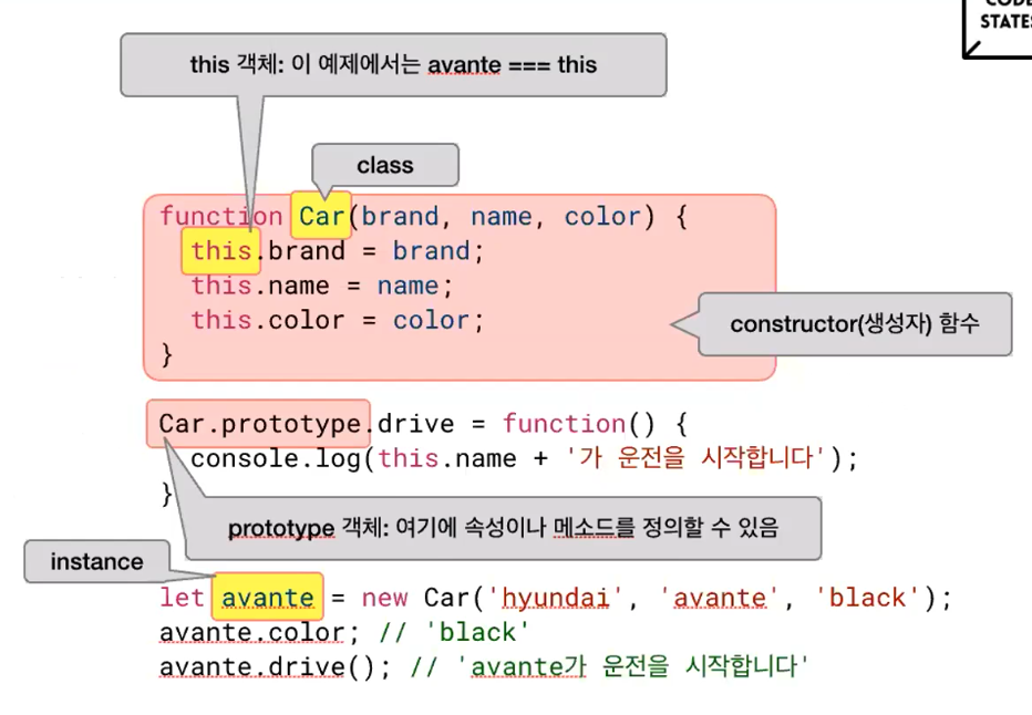 function identify() { return this.name.toUpperCase(); } function speak() { var greeting = "Hello, I'm " + identify.call(this); console.log(greeting) } var me = { name: "Kyle" }; var you = { name: "Reader" }; identify.call( me ); // KYLE identify.call( you ); // READER speak.call( me ); // Hello, I'm KYLE speak.call( you ); // Hello, I'm READER//call과 apply의 차이 var add = function (x, y) { this.val = x, y; } var obj = { val: 0 }; add.apply(obj, [2, 8]); // 첫번째는 this, 파라미터를 배열로 넘겨준다. console.log(obj.val); // 10 add.call(obj, 2, 8); // 첫번째는 this, 파라미터를 쉼표로 넘겨준다. console.log(obj,val); // 10//함수에 this를 안쓰고 있을 경우 function add(x, y) { return x + y; } add.call(null, 2, 8) add.apply(null, [2, 8])//apply를 쓰는 이유 Math.max(1,2,3,100,6,7) // 100 //만약에 배열로 주어지는 경우 let arr = [1,2,3,100,6,7] Math.max.apply(null, arr) // 100정리