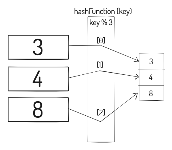 function hashFunction (key) { return key % 3; } console.log(hashFunction(128745)); // 0String.prototype.hashCode = function() { var hash = 0; if (this.length == 0) { return hash; } for (var i = 0; i < this.length; i++) { var char = this.charCodeAt(i); hash = ((hash<<5)-hash)+char; hash = hash & hash; // Convert to 32bit integer } return hash; } console.log('안녕하세요'.hashCode()); // 803356551Hash Table