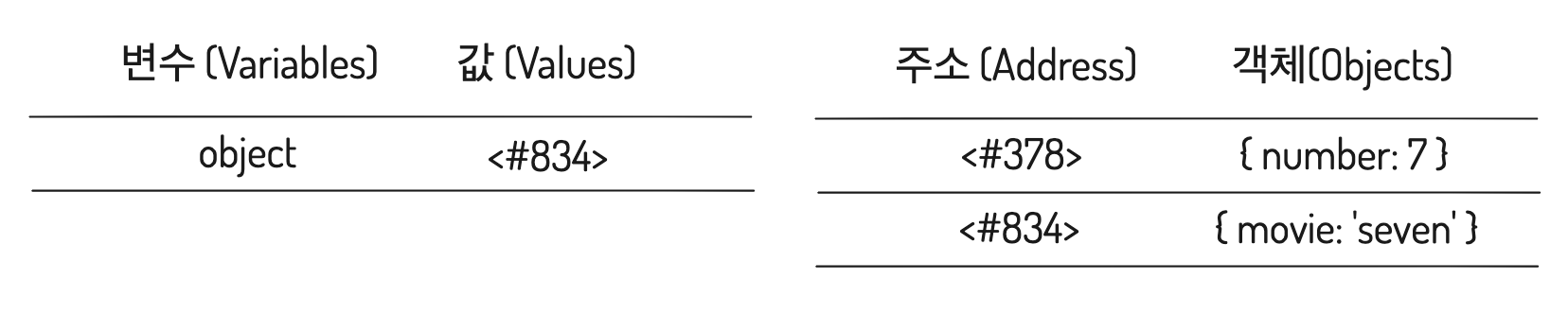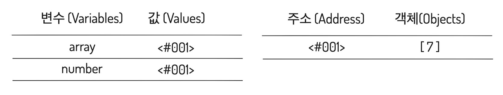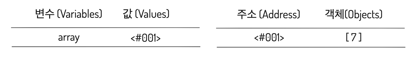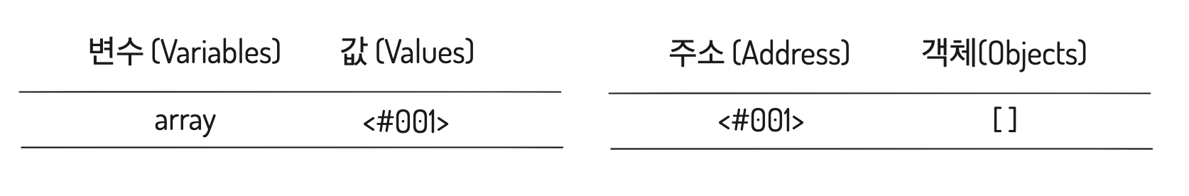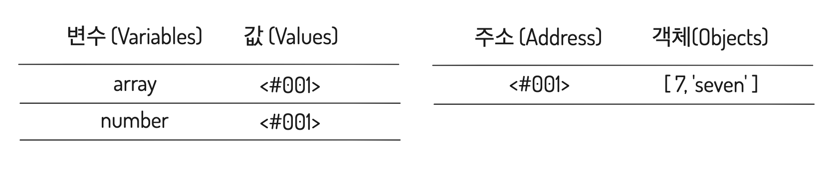 원시 타입이 아닌 값이 할당된 변수들은 그 값으로 향하는 참조(reference)를 가지게 됩니다.