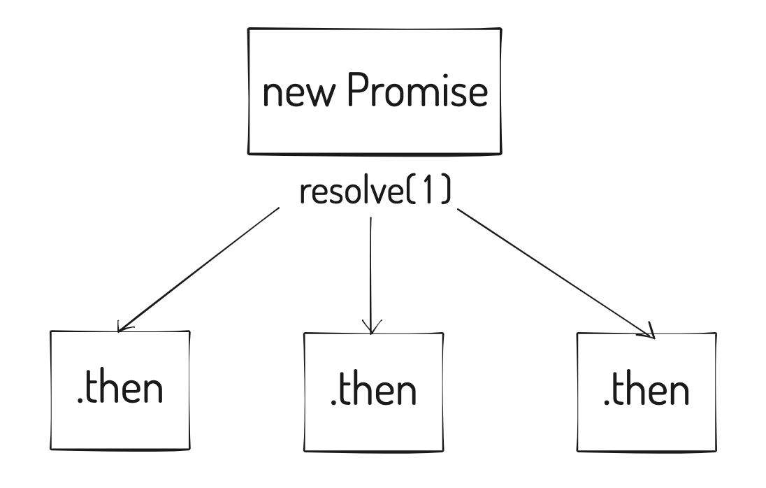 let promise = new Promise(function(resolve, reject) { setTimeout(() => resolve(1), 1000); }); promise.then(function(result) { alert(result); // 1 return result * 2; }); promise.then(function(result) { alert(result); // 1 return result * 2; }); promise.then(function(result) { alert(result); // 1 return result * 2; });하나의 promise에 대한 결과를 순차적으로 전달하지 않고 각각 독립적으로 처리합니다.