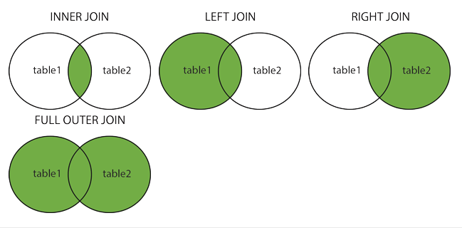 FULL (OUTER) JOIN : 왼쪽 또는 오른쪽 테이블에 일치하는 모든 레코드를 반환합니다.